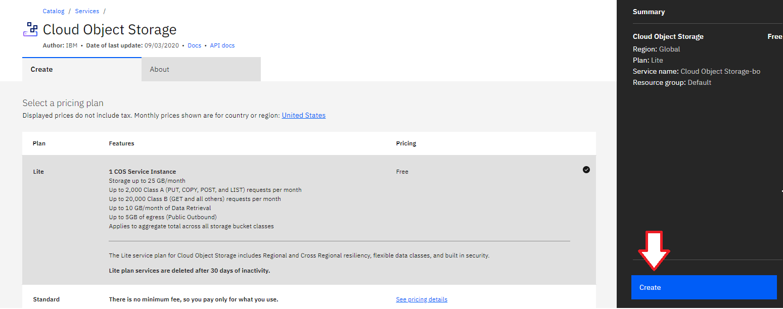 Ihr IBM Cloud Object Storage wurde erfolgreich erstellt.