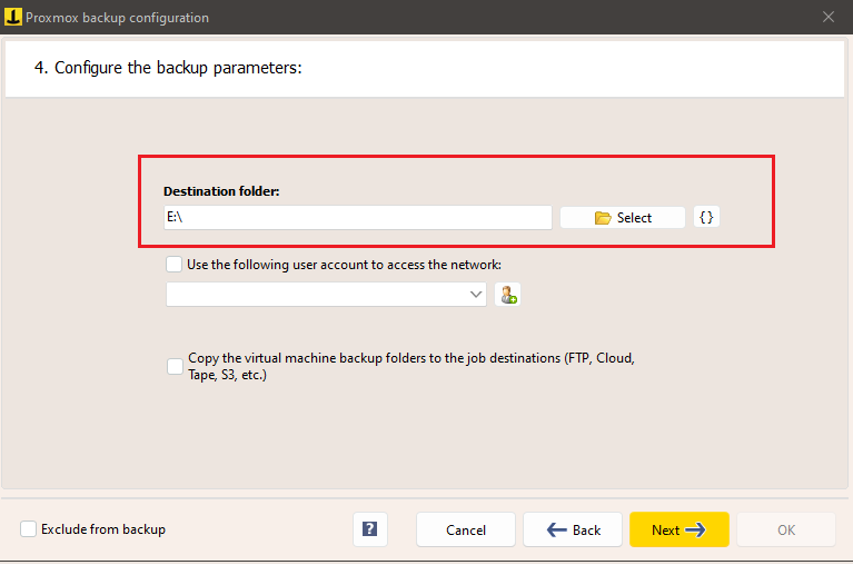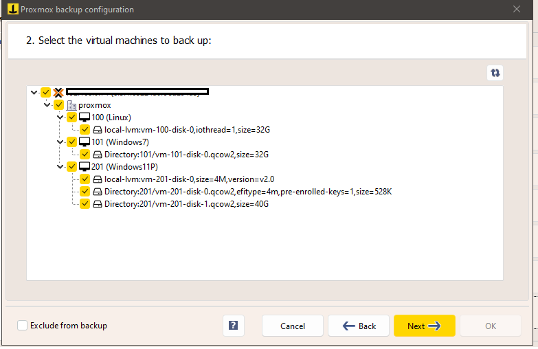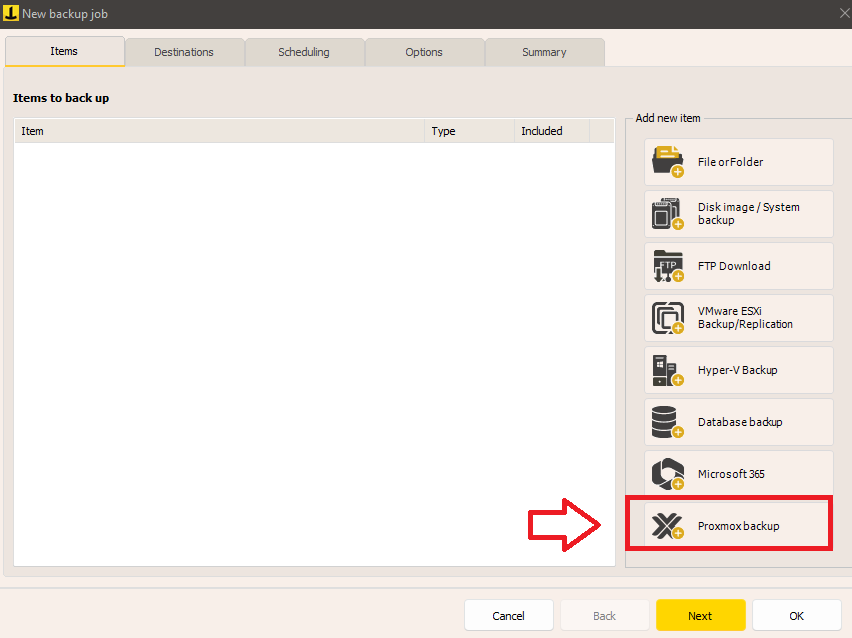 Fügen Sie dem Backup ein Element vom Typ Proxmox hinzu: