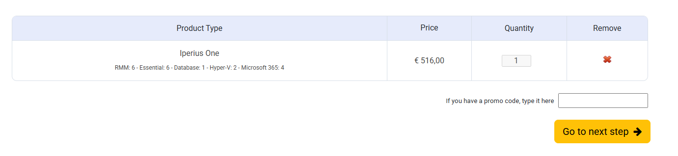 Anschließend werden Sie auf die Konfigurationsseite der Iperius-ONE-Lizenz weitergeleitet, auf der Sie die gewünschten Backup- und Monitoring-Module auswählen und danach das Produkt in den Warenkorb legen und die Zahlung abschließen können.