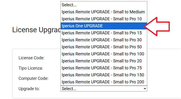 Wählen Sie den Eintrag „Iperius One UPGRADE“ aus: