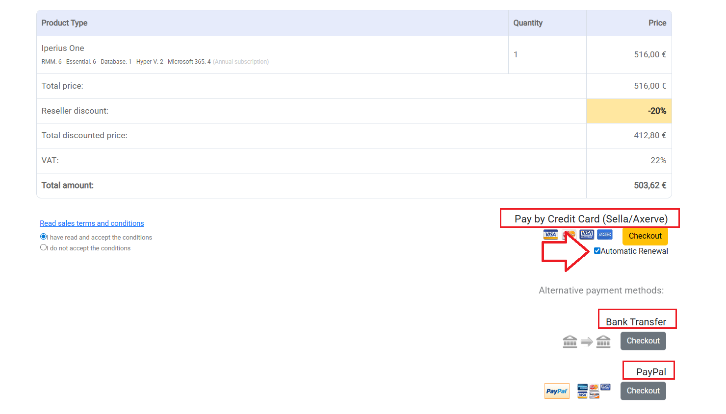Für Reseller: Wie bei den anderen Iperius-Lizenzen werden die Reseller-Rabatte im nächsten Schritt angewendet.