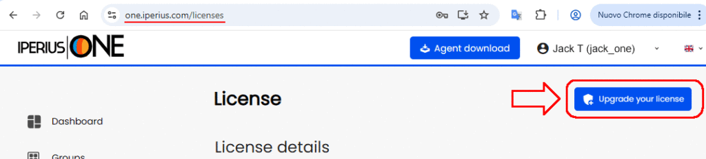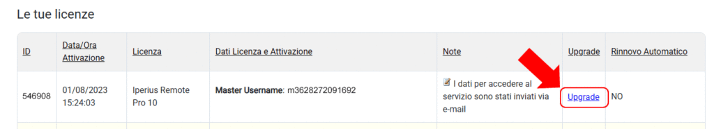 Die erste Möglichkeit besteht darin, die Lizenzseite auf der Website von Iperius Backup oder Iperius Remote aufzurufen und anschließend auf den Upgrade-Link zu klicken: