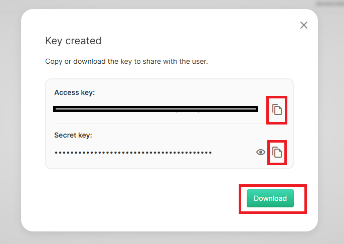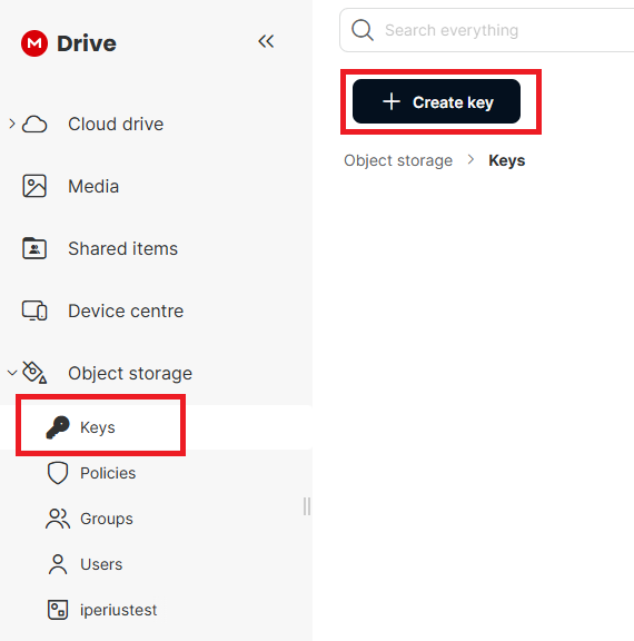 Dies sind die Zugangsdaten (Zugriffsschlüssel und geheimer Schlüssel), die Sie bei der Konfiguration der Datensicherung auf MEGA in die Iperius Backup-Software eingeben müssen, wie wir gleich sehen werden.