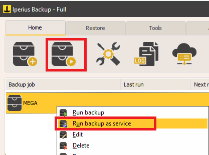 - Nach dem Speichern des Backup-Vorgangs können Sie ihn sofort zum Testen ausführen: