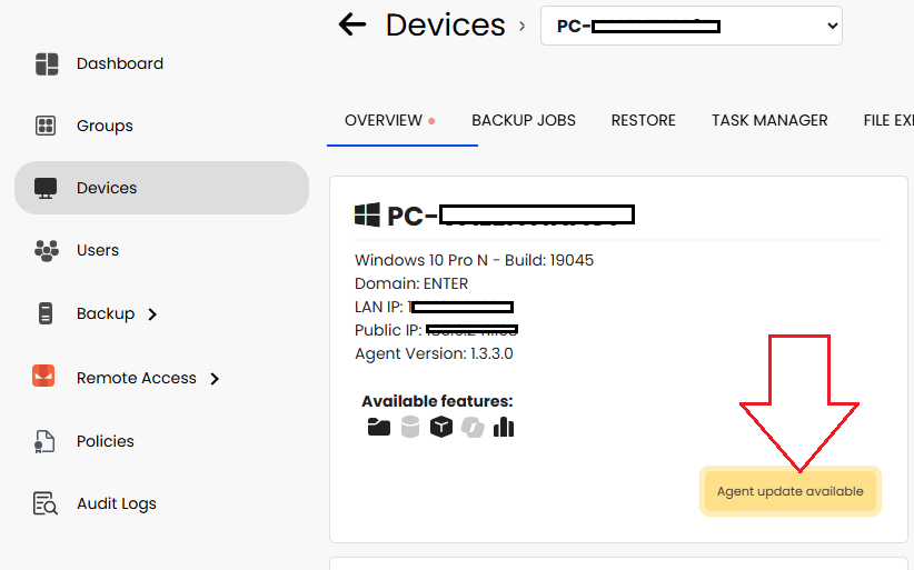 Warten Sie, bis die Installation abgeschlossen ist. Anschließend wird das Gerät auf die neueste Agentenversion aktualisiert.